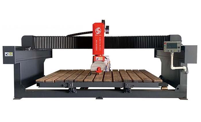本設(shè)備采用PLC可編程控制系統(tǒng)和觸摸屏操作界面,操作靈活、簡(jiǎn)單;機(jī)器結(jié)構(gòu)一體式,占地面積小,安裝方便;該機(jī)主要部件采用優(yōu)質(zhì)進(jìn)口配件,伺服電機(jī),機(jī)頭旋轉(zhuǎn)0-45-90度,工作臺(tái)可85度翻版,根據(jù)石材材質(zhì)進(jìn)行調(diào)速定位,智能進(jìn)行橫切、豎切、斜切,還可直接將機(jī)頭轉(zhuǎn)到45度進(jìn)行反倒、可切圓形、弧形、馬肚邊、追紋、任意弧線(xiàn)。本設(shè)備還配備銑刀,可進(jìn)行臺(tái)面板開(kāi)孔。切割效率高、切割精度高、穩(wěn)定性高操作簡(jiǎn)便等,特別適用于高價(jià)值的巖板、大理石、花崗巖等切割。